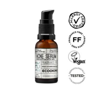 Ecooking acne serum er et aktivt serum specielt målrettet mod fedtet akne og forebyggelse af akneudbrud.